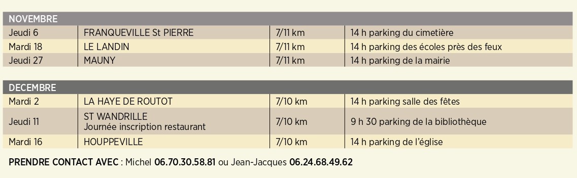 Les marches de Rouen : chaque sortie est scindée en 2 groupes avec 2 distances, environ 6/7 kms et 10/11 kms