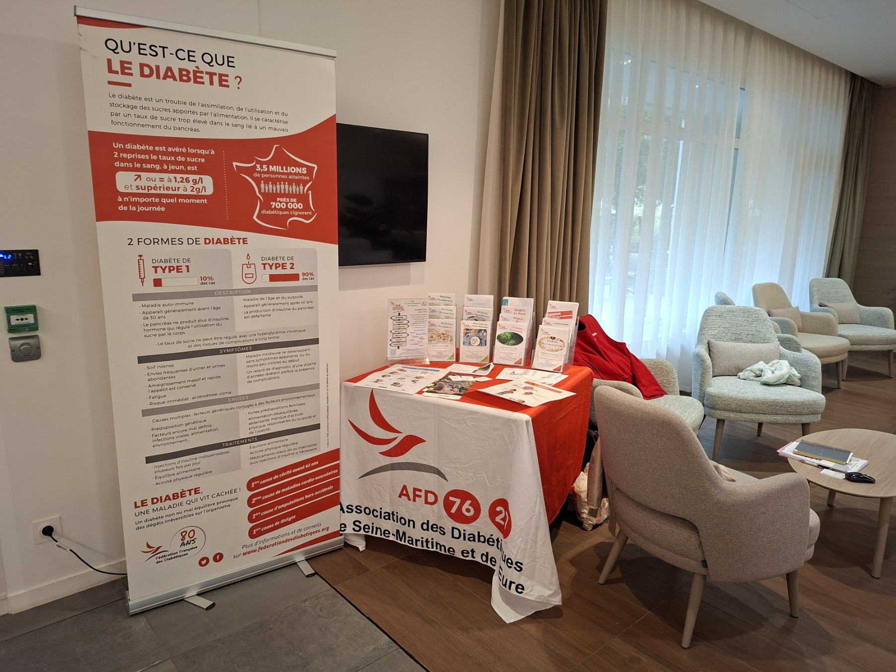Présence de nos bénévoles au forum des associations conventionnées avec l'hôpital de Dieppe pour se faire connaître et dispenser des informations sur l'association, ses actions sur le secteur et le diabète.