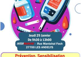 Dans le cadre de ses actions de prévention et de sensibilisation auprès des personnes à risque de développer le diabète, venez rencontrer nos bénévoles dans la galerie marchande d'Intermarché.